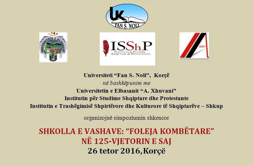 Instituti i Trashëgimisë Shpirtërore dhe Kulturore të Shqiptarëve – Shkup, është pjesë e organizimit të simpoziumit shkencor që mbahet në Korçë më 26 tetor 2016, me temë “SHKOLLA E VASHAVE: FOLEJA KOMBËTARE”. Simpoziumi mbahet me rastin e 125-vjetorin e hapjes së shkollës së parë të vashave në Shqipëri.