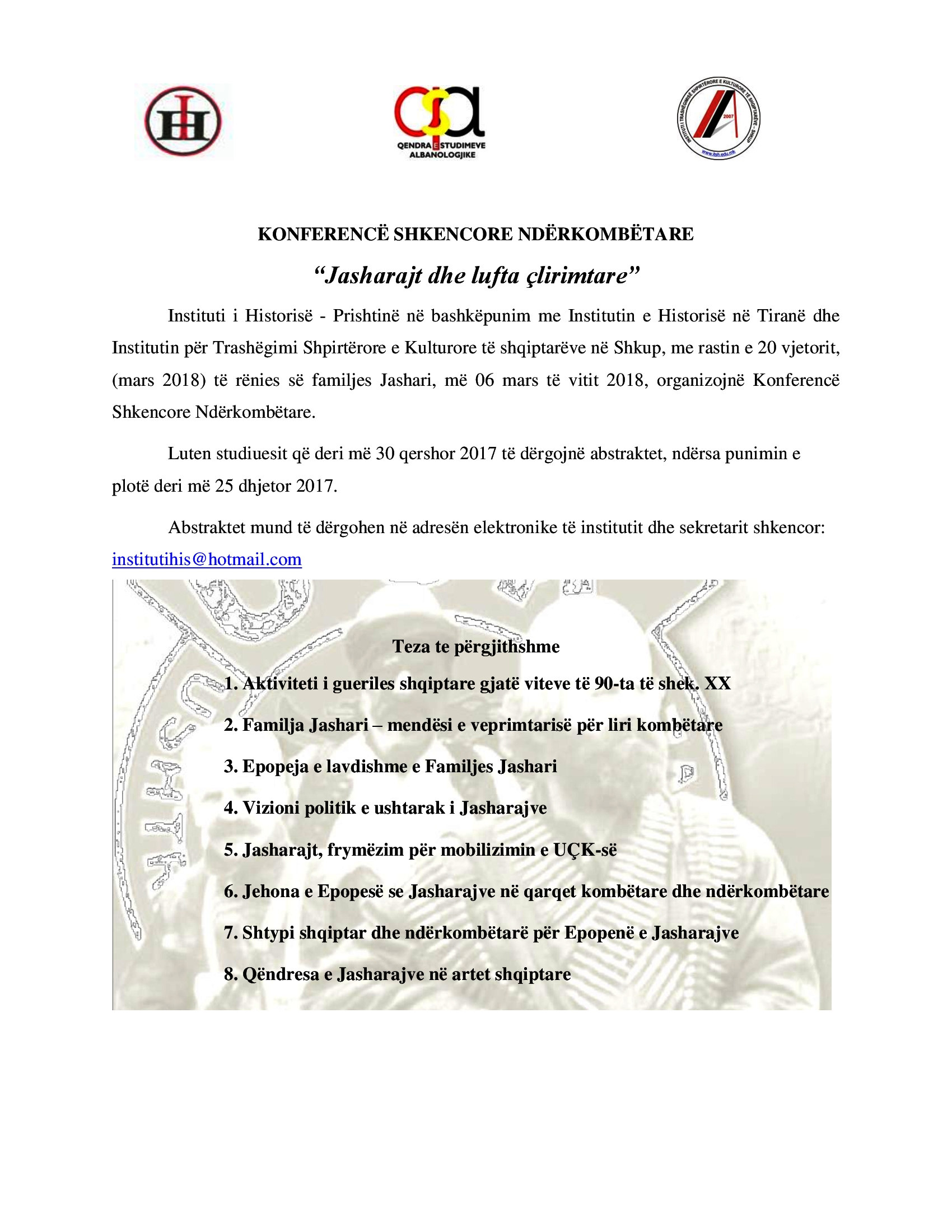 Njoftim rreth konferencës “Jasharajt dhe lufta çlirimtare”