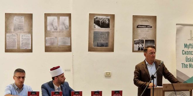 Shkup, 26.07.2023 – Instituti i Trashëgimisë Shpirtërore e Kulturore të Shqiptarëve – Shkup dhe Myftinia e Shkupit, sot e përkujtuan 60-vjetorin e tërmetit të Shkupit, duke promovuar librin dhe ekspozitën e dokumenteve dhe fotografive me titull “Tërmeti i vitit 1963, shpërfytyrimi i Shkupit”, përgatitur nga studiuesi Skender Asani.