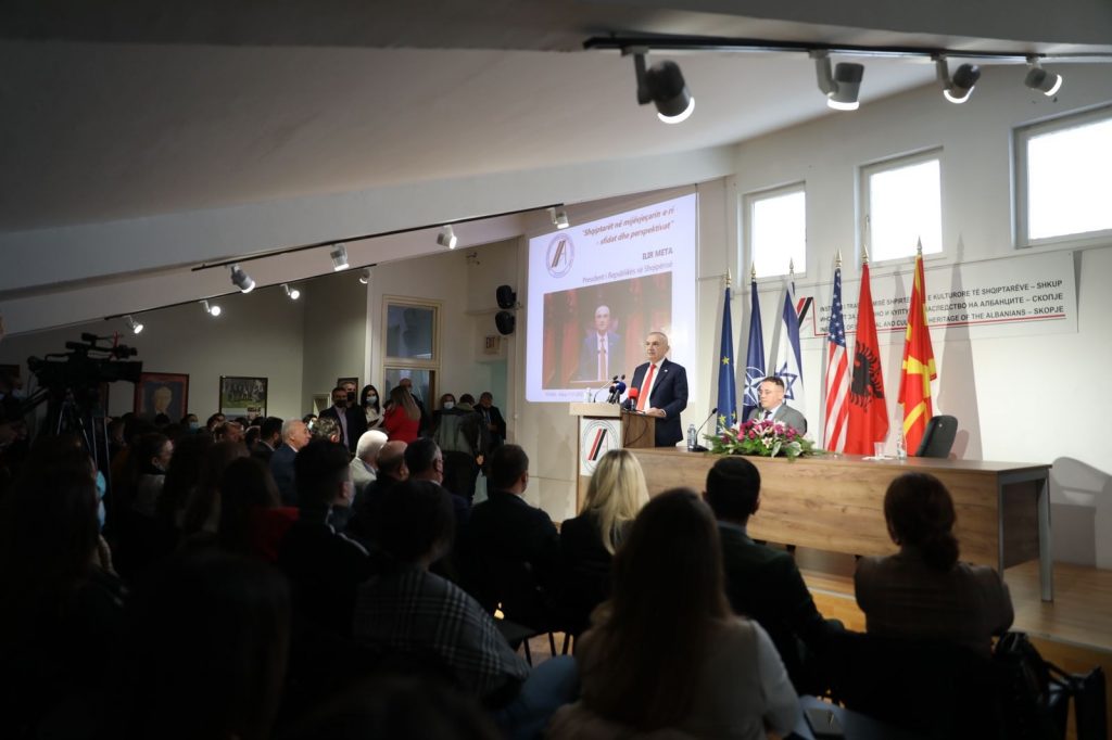 Presidenti Meta mban ligjëratën me temë “Shqiptarët në mijëvjeçarin e ri – sfidat dhe perspektivat” në Institutin e Trashëgimisë Shpirtërore dhe Kulturore të Shqiptarëve në Shkup: Bashkimi Europian duhet të ofrojë “karotën” kur duhet, por edhe “shkopin” kur është e nevojshme ndaj të gjithë autokratëve në rajon të cilët rikthejnë tema të së kaluarës, si një shantazh, për t’i lënë rehat në autokracinë e tyre.