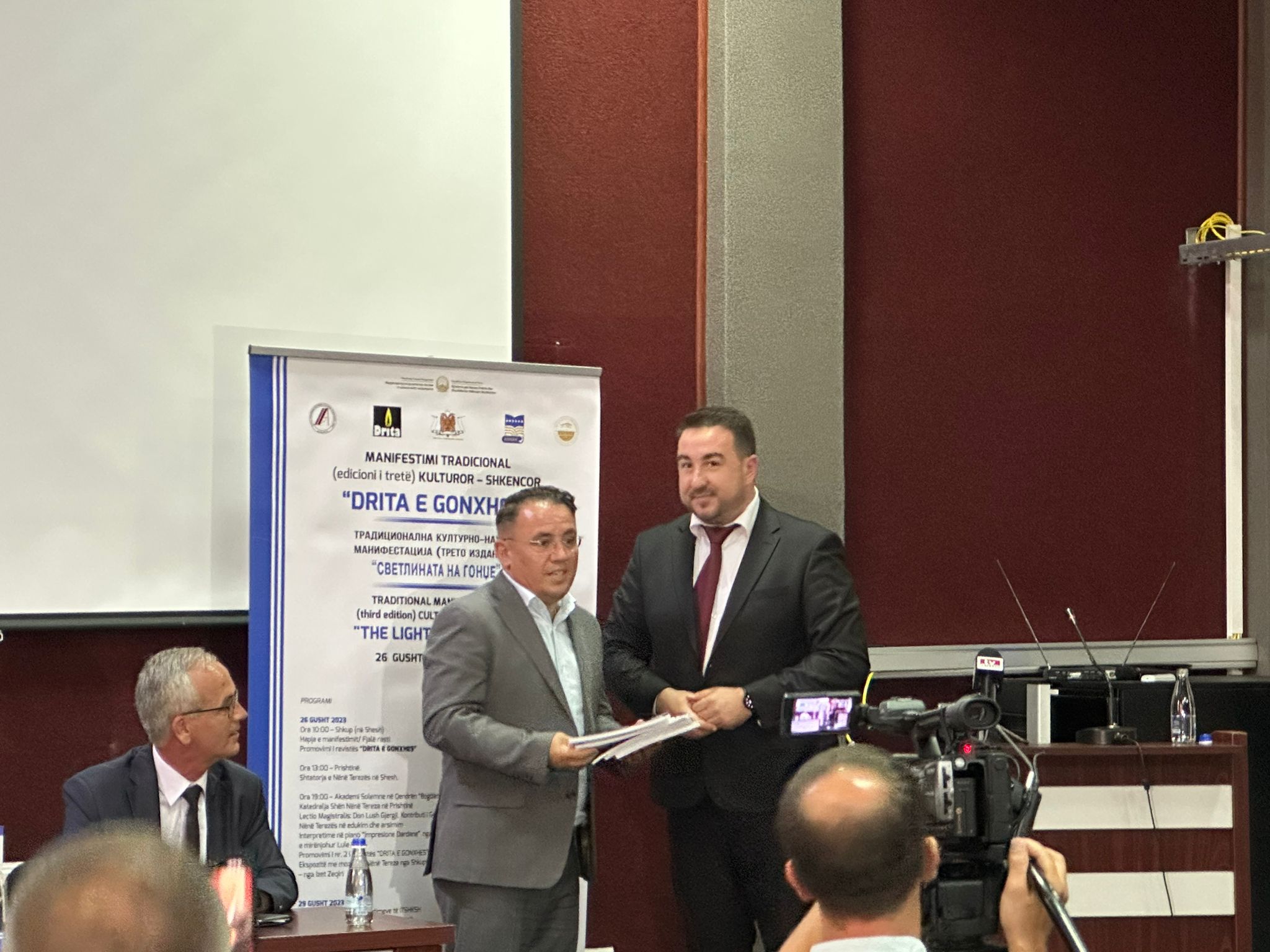 Drejtori i ITSHKSH, Asani, në fund të aktivitetit të sotëm ia dhuroi disa tituj librash rektorit të Universitetit të Prizrenit.
