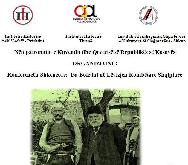 Nën patronatin e Kuvendit dhe Qeverisë së Republikës së Kosovës, në Prishtinë do të organizohet Konferenca shkencore: “Isa Boletini në Lëvizjen Kombëtare Shqiptare”.