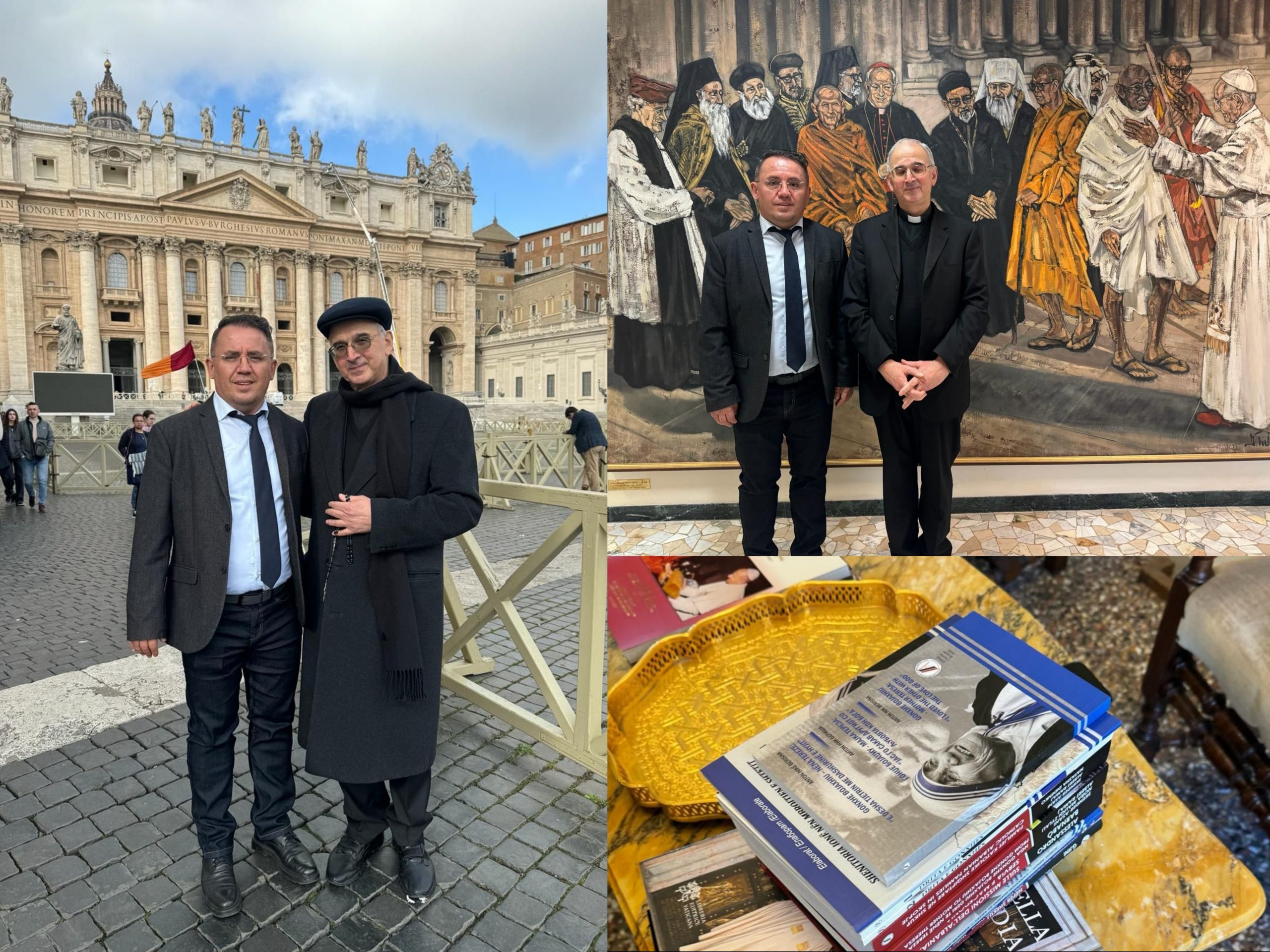 Vatikan, 08 shkurt 2024 – Sot në Selinë e shenjtë, në Vatikan, u organizua një pritje për Prof.dr. Skender Asanin , drejtor i Institutit të Trashëgimisë Shpirtërore dhe Kultrurore të shqiptarëve nga ana e monsignor Khaled B. Akasheh, përgjegjës i digasterit për dialog interreligjoz. Ky i fundit në vitin 1982 e kishte takuar Nënën Tereze në Palestinë dhe ky ishte një shkas që pikërisht kjo figurë të zëjë gati pjesën qëndrore të takimit, me ç’rast drejtori Asani shpalosa gjithë punën dhe vizionin e ITSHKSH, sidomos ato segmente që në mënyrë shkencore dhe të përkushtuar trajtojnë çështje të komunikimit dhe mirëbesimit qytetar e fetar në vendin tonë, duke përmendur edhe punën që është bërë në kuadër të Departamentit për studimin e trashëgimisë së Gonxhe Bojaxhiut-Nënës Tereze.