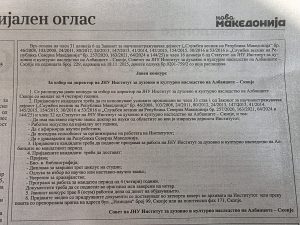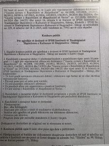 Konkurs Publik : Për zgjedhje të drejtorit të IPSH – Institutit të Trashëgimisë Kulturore e Shpirtërore të Shqiptarëve – Shkup. 1. December, 2025 Aktuale, Headlines, Konkurse 117 Shikime Shperndaje Facebook Twitter Google + LinkedIn